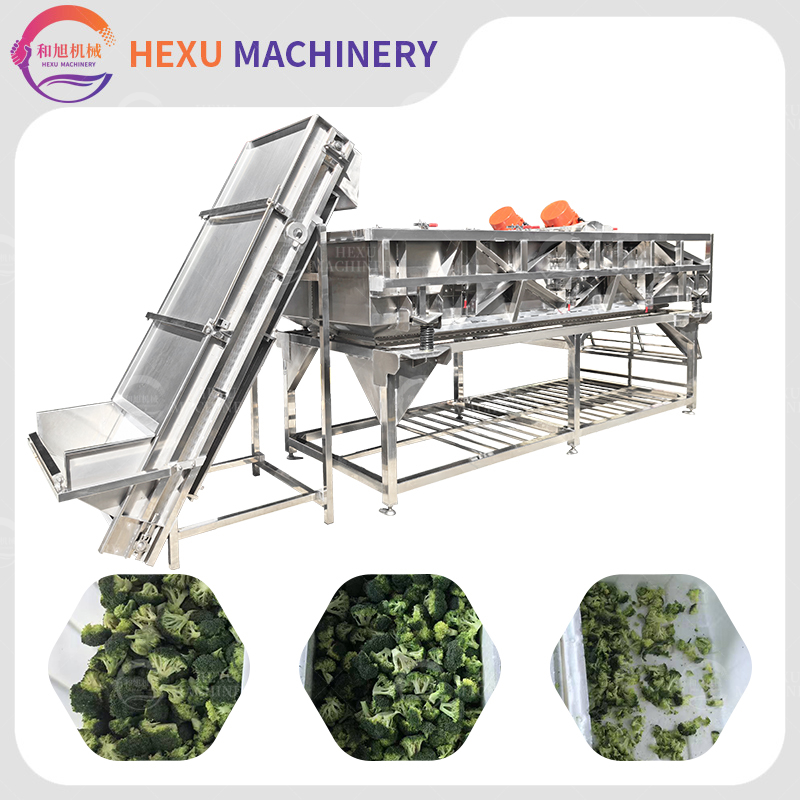 本振动分级机是专为西蓝花等类似蔬菜设计的高效分级设备。它利用多层级振动筛网之间的不同间隙,通过物料的自重和振动抛射原理,实现对西蓝花按尺寸大小的自动分级。
