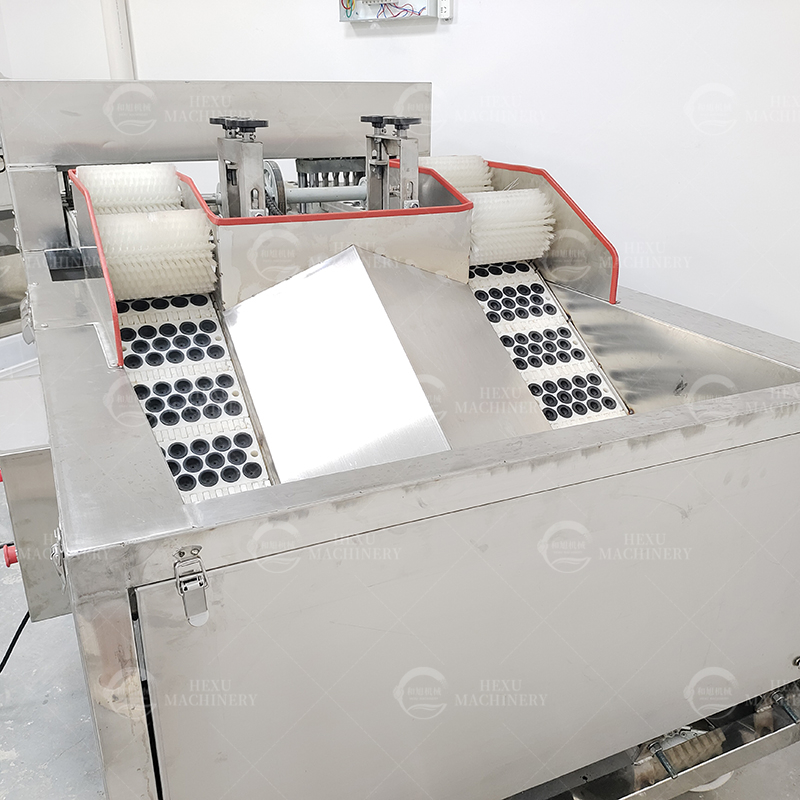 This machine has a high degree of automation, as long as the fruits are poured into the hopper, they can be automatically transported to the pins, pitted and discharged. The machine uses a combination of a hopper and conveyor belts, and uses different molds according to the diameter of the fruits. The brushes above the conveyor belt can sweep the fruit into the mold, which improves the feeding rate and work efficiency.