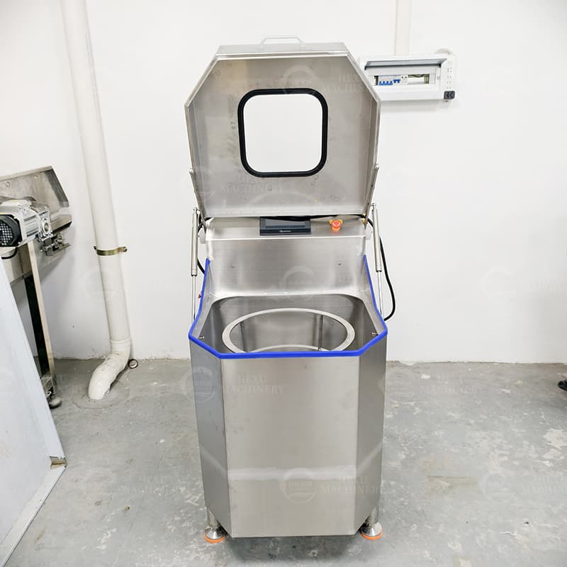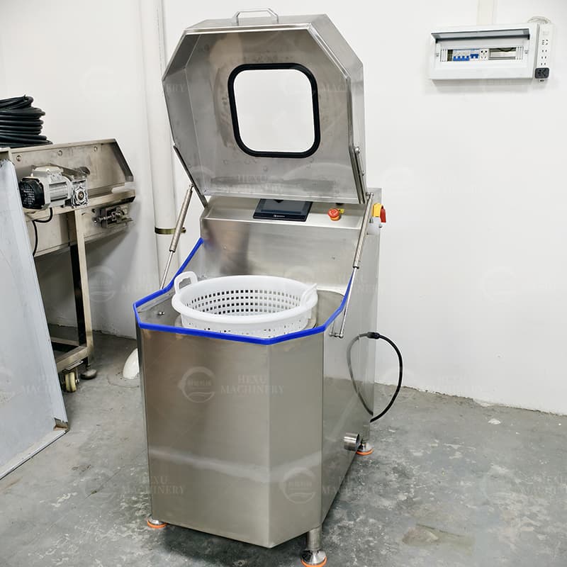 This vegetable dewatering machine uses a maximum of 1440rpm high-speed rotation to quickly dry the surface moisture of vegetables. The body is made of 304 stainless steel, and the PLC control panel can be selected to set the dehydration frequency and time, which is suitable for a variety of different materials, with stable operation and high degree of dehydration.