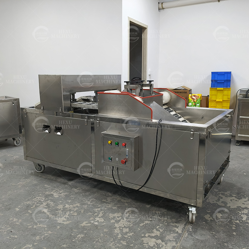 This machine has a high degree of automation, as long as the fruits are poured into the hopper, they can be automatically transported to the pins, pitted and discharged. The machine uses a combination of a hopper and conveyor belts, and uses different molds according to the diameter of the fruits. The brushes above the conveyor belt can sweep the fruit into the mold, which improves the feeding rate and work efficiency.