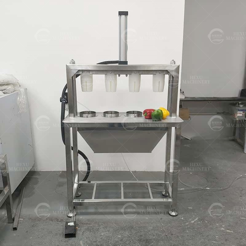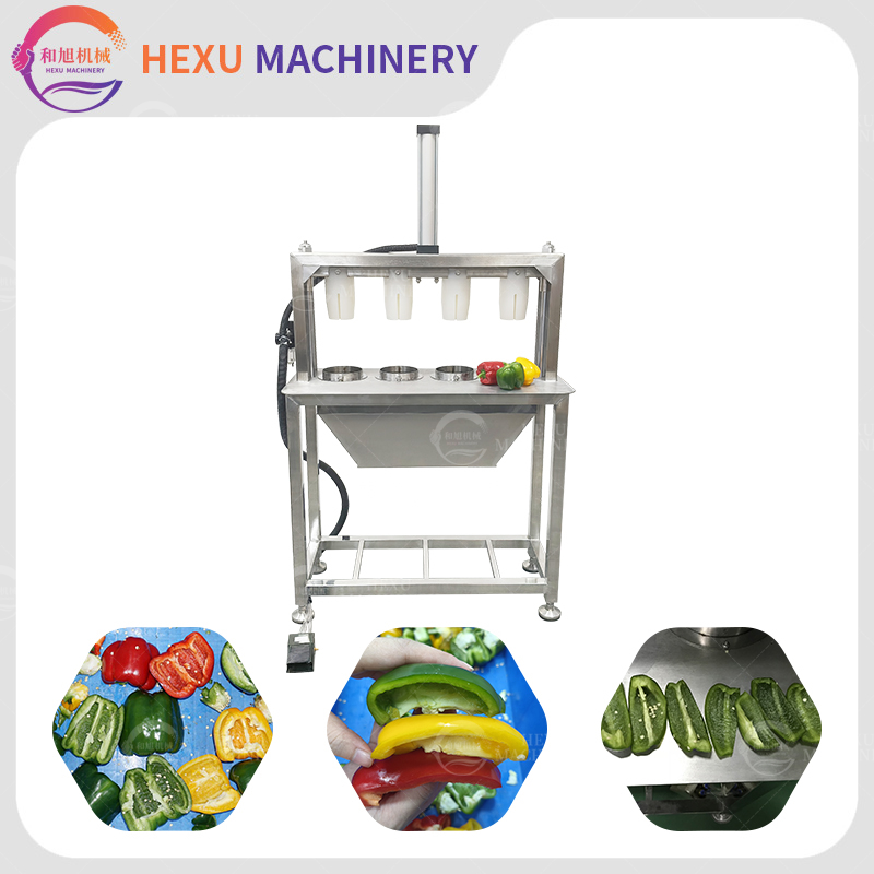 This machine is a device designed for removing cores and slicing into several pieces from relatively soft materials such as bell peppers, green peppers, tomatoes, and broccoli. The machine has a simple structure and is convenient for maintenance and cleaning. Made of food-grade materials.